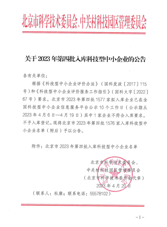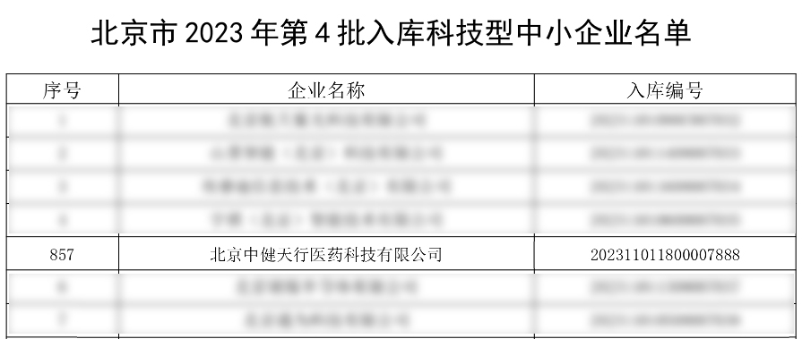 近日,北京市科學(xué)技術(shù)委員會,公布了2023年第四批入庫“北京市科技型中小企業(yè)”名單,北京中健天行醫(yī)藥科技有限公司再次榮獲北京市科技型中小企業(yè)認定,這一殊榮標(biāo)志著我司在研發(fā)申報科技創(chuàng)新領(lǐng)域取得了顯著的成就,也是對其不斷努力和創(chuàng)新能力的高度肯定。