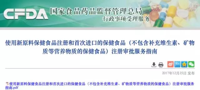 12月25日,國家食品藥品監(jiān)督管理局行政事項受理服務(wù)網(wǎng)站發(fā)布了《特殊食品類產(chǎn)品注冊審批服務(wù)指南》,其中包含了使用新原料保健食品注冊和首次進口的保健食品(不包含補充維生素、礦物質(zhì)等營養(yǎng)物質(zhì)的保健食品)注冊審批服務(wù)指南、特殊醫(yī)學(xué)用途配方食品注冊審批事項服務(wù)指南、嬰幼兒配方乳粉產(chǎn)品配方注冊審批服務(wù)指南,具體整理《保健食品新注冊指南》如下: