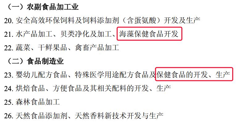 據(jù)了解,國(guó)家鼓勵(lì)外商投資的產(chǎn)業(yè)目錄領(lǐng)域包含“海藻保健食品開發(fā)”以及“保健食品的開發(fā)、生產(chǎn)”。