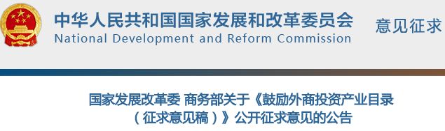 2月1日,為貫徹落實(shí)《國(guó)務(wù)院辦公廳關(guān)于聚焦企業(yè)關(guān)切進(jìn)一步推動(dòng)優(yōu)化營(yíng)商環(huán)境政策落實(shí)的通知》(國(guó)辦發(fā)〔2018〕104號(hào)),國(guó)家發(fā)展改革委和商務(wù)部聯(lián)合發(fā)布了關(guān)于《鼓勵(lì)外商投資產(chǎn)業(yè)目錄(征求意見稿)》。