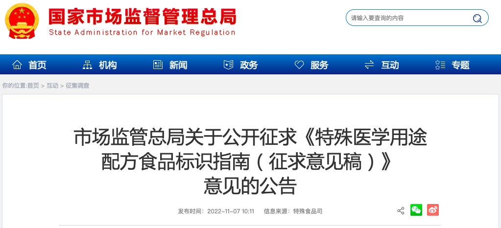 市場監(jiān)管總局公開征求《特殊醫(yī)學用途配方食品標識指南(征求意見稿)》意見