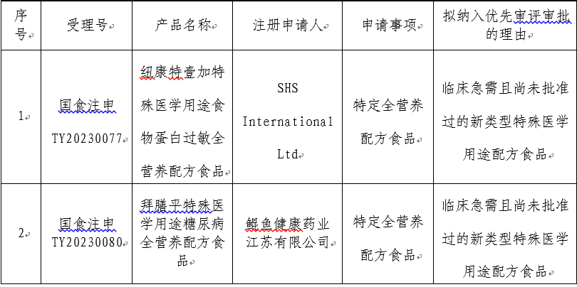 擬納入優(yōu)先審評(píng)審批程序特殊醫(yī)學(xué)用途配方食品注冊(cè)申請(qǐng)的公示