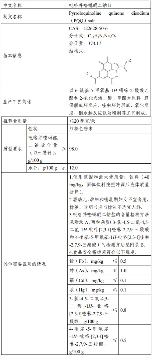 新食品原料 | 深度認(rèn)識(shí)吡咯喹啉醌二鈉鹽(PQQ)